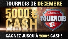 Comme chaque mois, le joueur inscrit sur le casino en ligne Circus.be a droit à 3 types de tournois et ce mois de décembre 2014 ne fait pas exception. Les tournois de décembre offrent au joueur de nombreuses opportunités pour empocher du cash et des bonus. En s’inscrivant par exemple pour le tournoi mensuel, il a la chance de gagner 5 000 € d’argent cash. Il suffit de venir en tête du classement à la fin du tournoi pour remporter ce premier prix.