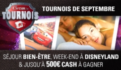 Tout au long de septembre, Circus.be organise aussi des tournois hebdomadaires, avec comme premiers prix des weekends à Disneyland Paris. Les gagnants pourront s’y rendre en couple ou avec un proche et deux enfants. L’accès au parc d’attractions du centre et les billets de train sont également pris en compte, sans oublier la nuitée qui se fera à l’hôtel Santa Fe. Pour ceux qui finiront à la 2e, 3e, 4e ou 5e place des tournois, ils remporteront chacun 250 euros cash.