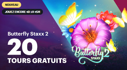 Après avoir misé les 20 €, il vous faudra redémarrer le jeu. Dès lors, vous bénéficiez de 20 Cash spins de 0,25 € valables au jeu Butterfly Staxx 2. Ces Cash spins sont valables jusqu’au jeudi 12 septembre à 23h59.