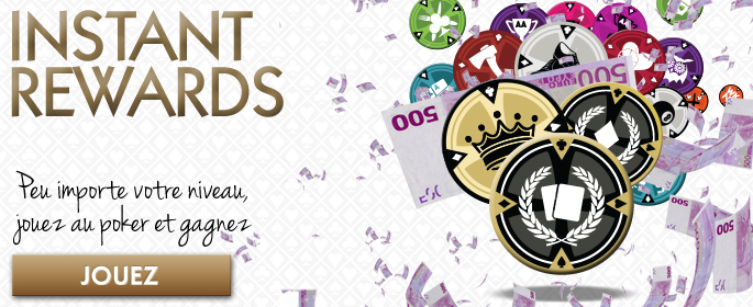 Il n’y a pas de limite aux Instant Remards, ceux-ci sont accordés aux joueurs sur la même base que dans les jeux vidéos. En évoluant dans le classement, les joueurs reçoivent les points pour le classement de mérite, mais aussi les lots mentionnés plus haut. Il y en a tellement que les premiers bénéficiaires se comptent par milliers, donc pas d’hésitation ! Chacun doit démontrer au maximum ses talents au poker pour être primé avec le plus d’Instant Rewards possible !