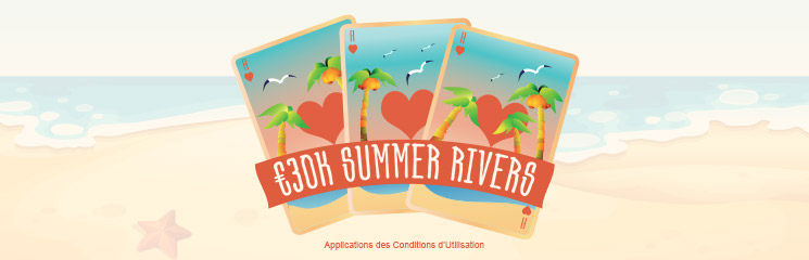 La récolte des cartes River sur les tables de Ladbrokes.be a commencé le 11 juillet 2016. Dans cette quête, le joueur est libre de reporter sa chance sur une autre carte River lorsqu’il pressent une mauvaise combinaison avec sa carte Golden River. Ladbrokes offre des tokens quotidiens qui donnent accès au Summer Daily à 1 000 €. Vous gagnerez aussi des tokens pour l’événement principal programmé pour le 28 août 2016 avec deux freerolls All-in de 5 000 € et de 25 000 €.